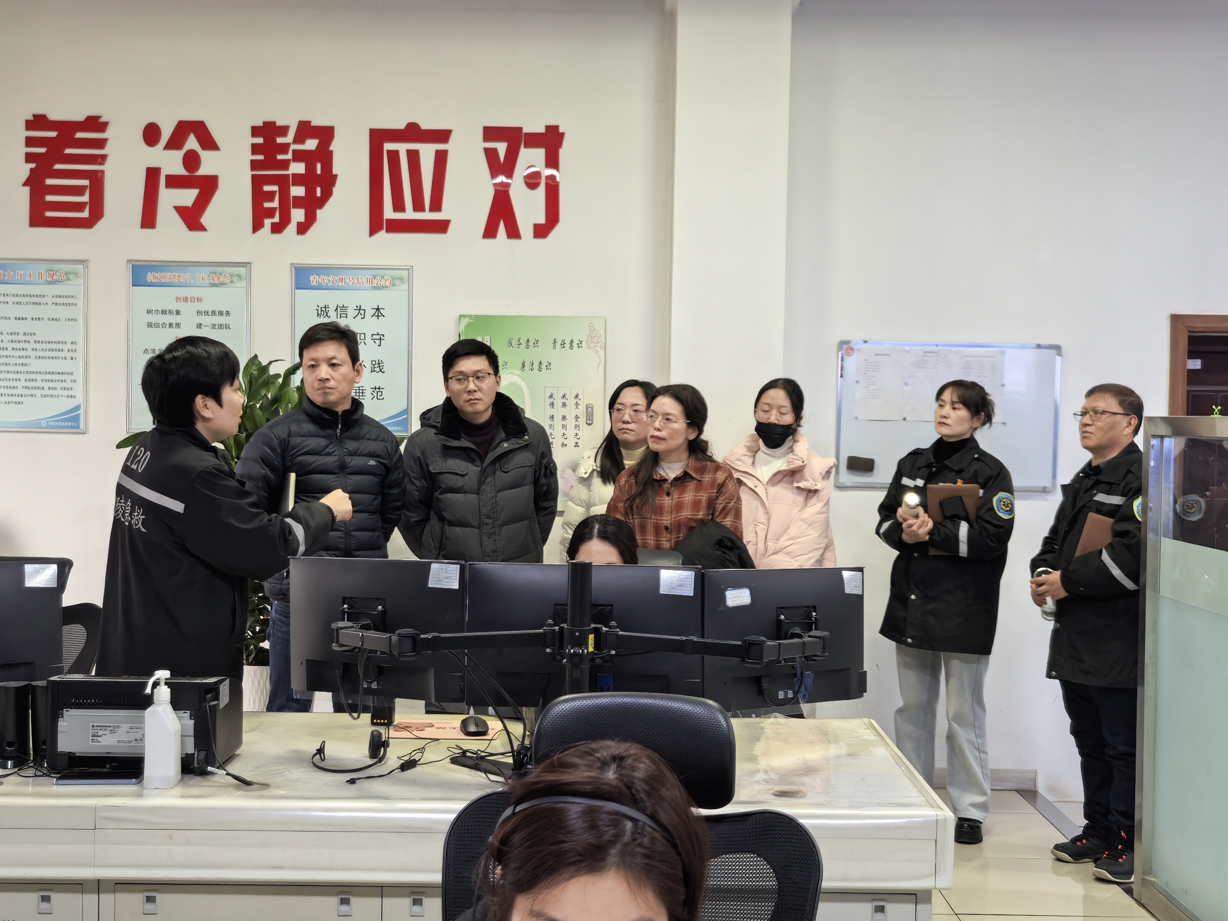 会后,王波副主任一行参观了120调度指挥大厅与急救培训教室,实地了解了120调度系统、急救调度流程与急救知识培训开展情况。